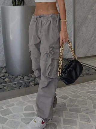 Streetwear Cargo Pants Zip Pocket Low Rise Denim Trousers Vintage